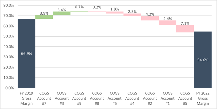 Regardless of the origin, contracting margins generally indicate there is opportunity to improve and can be somewhat off-putting to investors. Management should investigate the source of their margin compression by building a gross margin bridge using the template below.