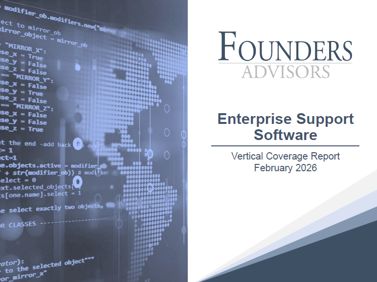 In this edition of Founders’ Enterprise Support Software Vertical Coverage Report, our team shares key market takeaways and recent activity across the Enterprise Support Software landscape. The report includes coverage across supply chain software, FP&A software, and workflow and process automation software, along with broader insights on valuation trends and investor priorities. This report includes: